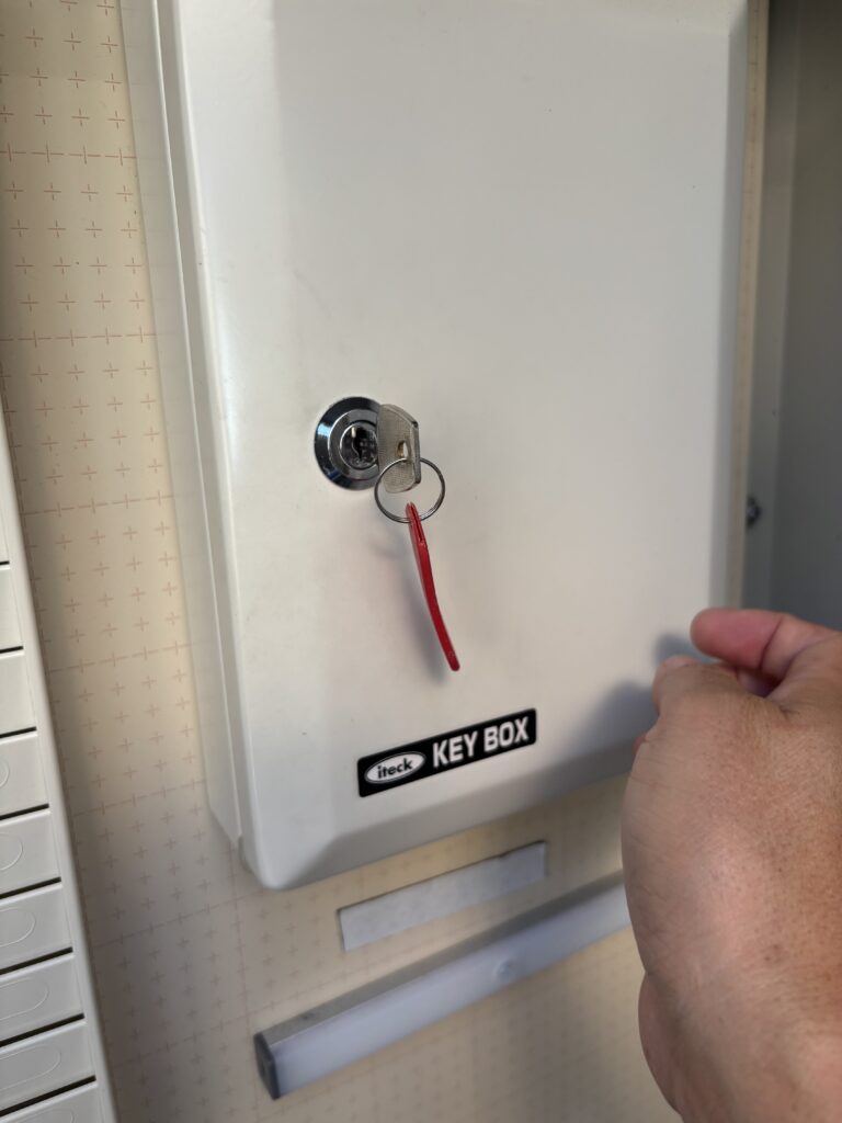 キーボックスの中の青のタグが付いた鍵